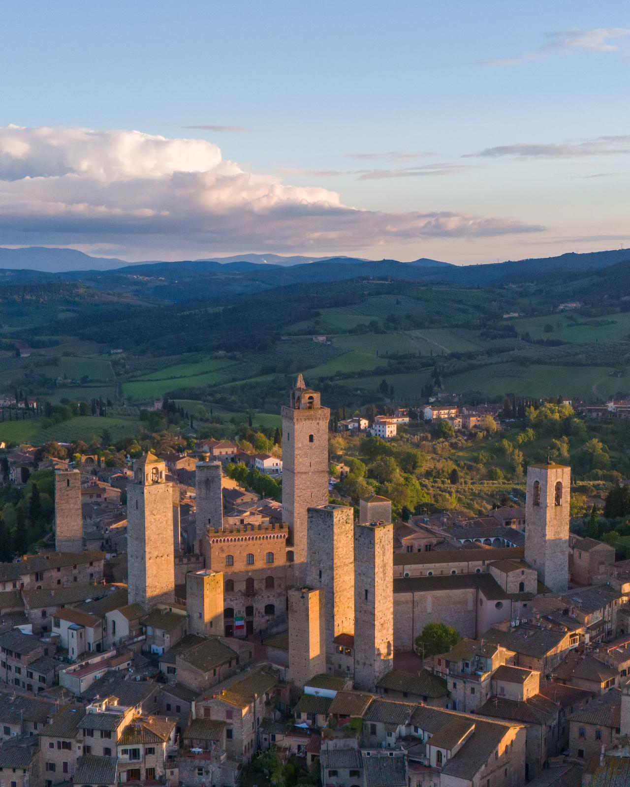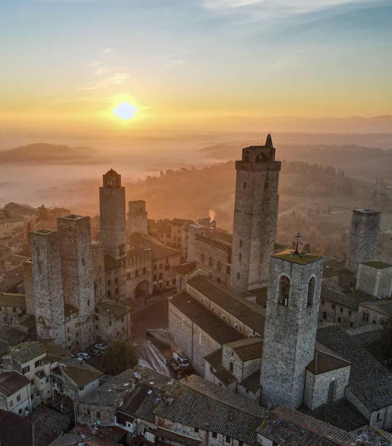 - 🌇 Tramonto: la Golden Hour più bella d’Italia, con il sole che cade tra le torri di San Gimignano.